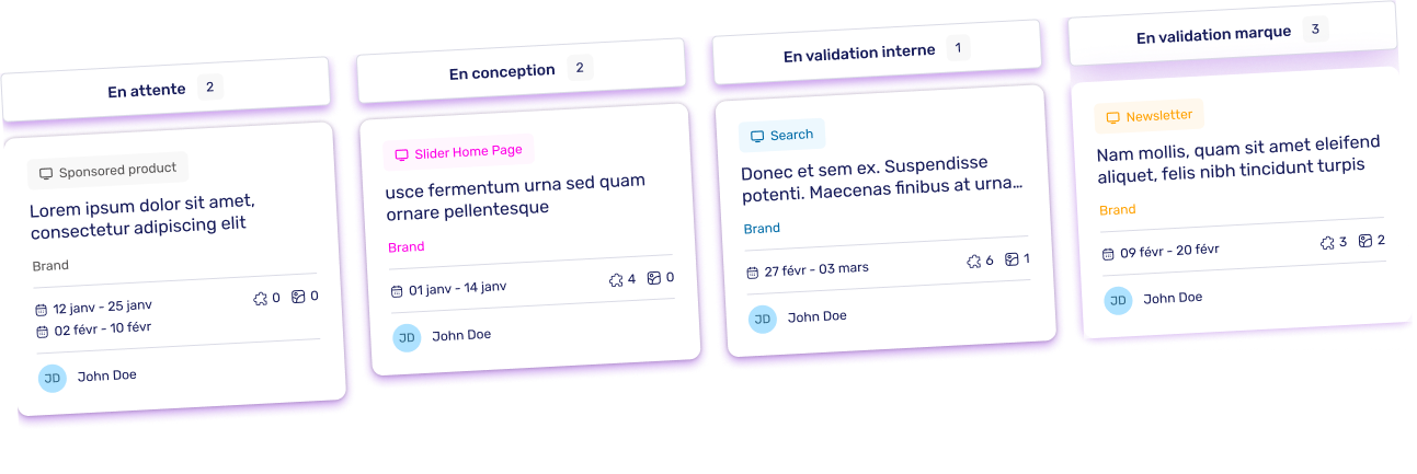 Pour fluidifier la collaboration autour de la création des assets de campagne, Duyo vous permet désormais de visualiser l’utilisateur à l’origine du dernier changement de statut d’un média. Une évolution précieuse pour mieux suivre l’avancement des validations et retracer les contributions de chacun.
